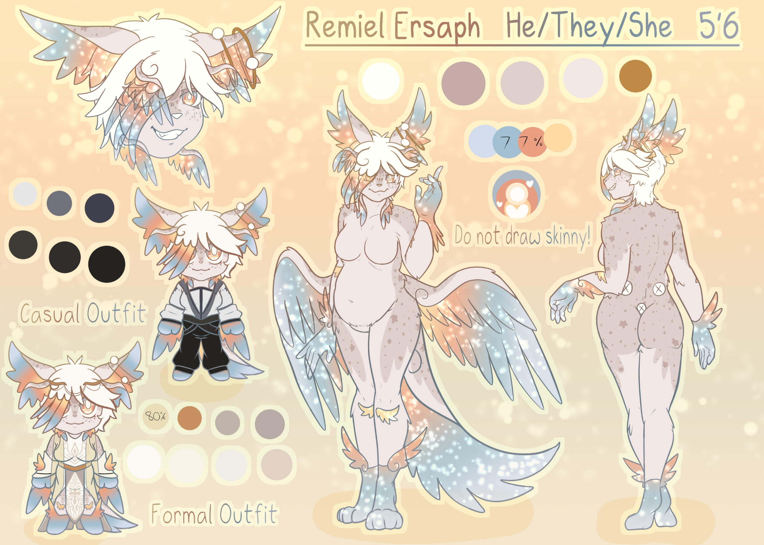 You are permitted to use it as a profile picture, show it off on social media with credit, and use it as a reference for other artists or yourself, but do not make money off of my art outside of selling the character without paying the commercial rights fee